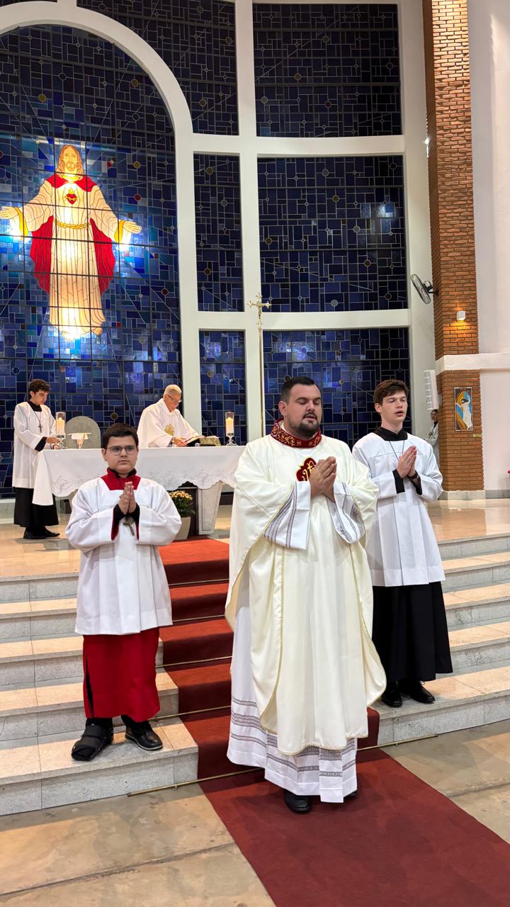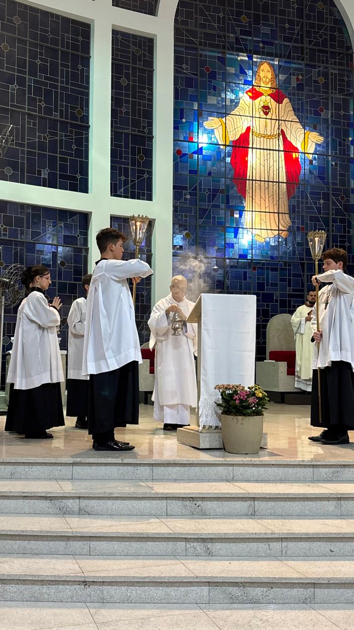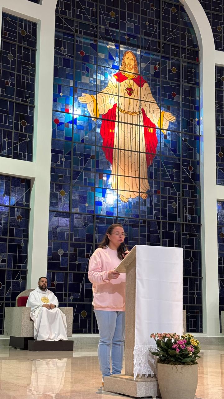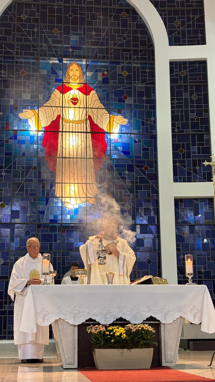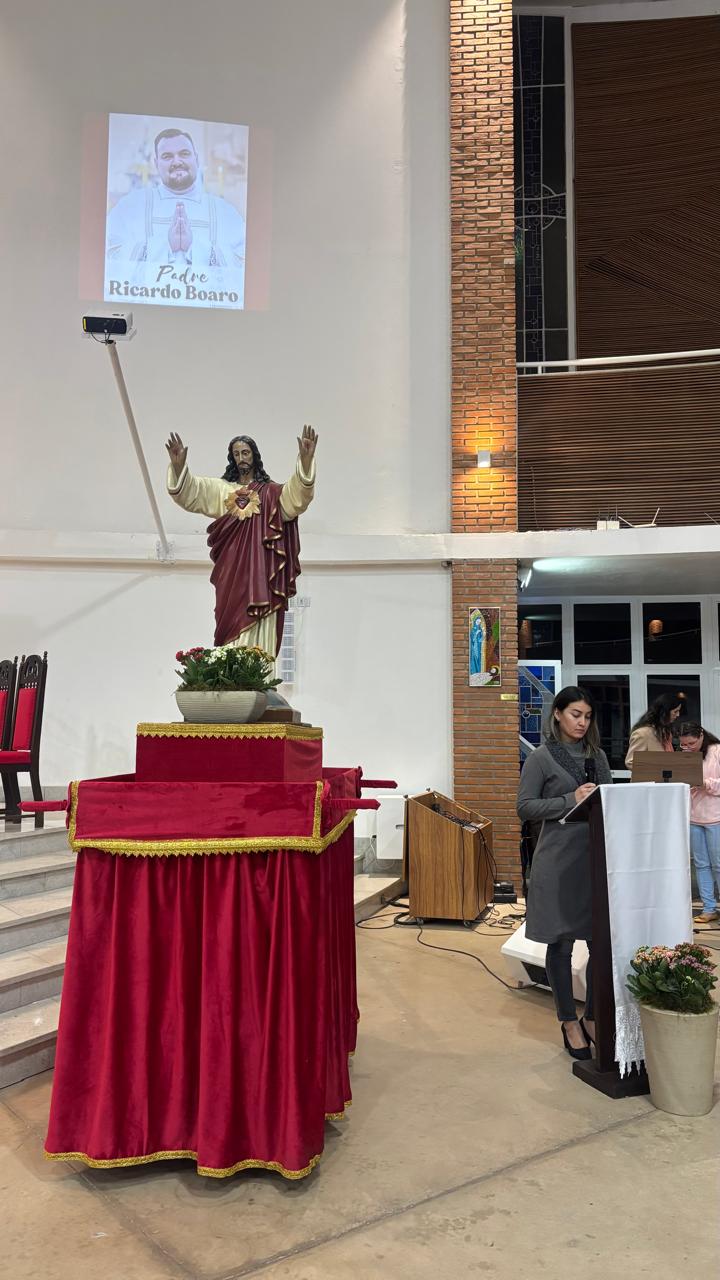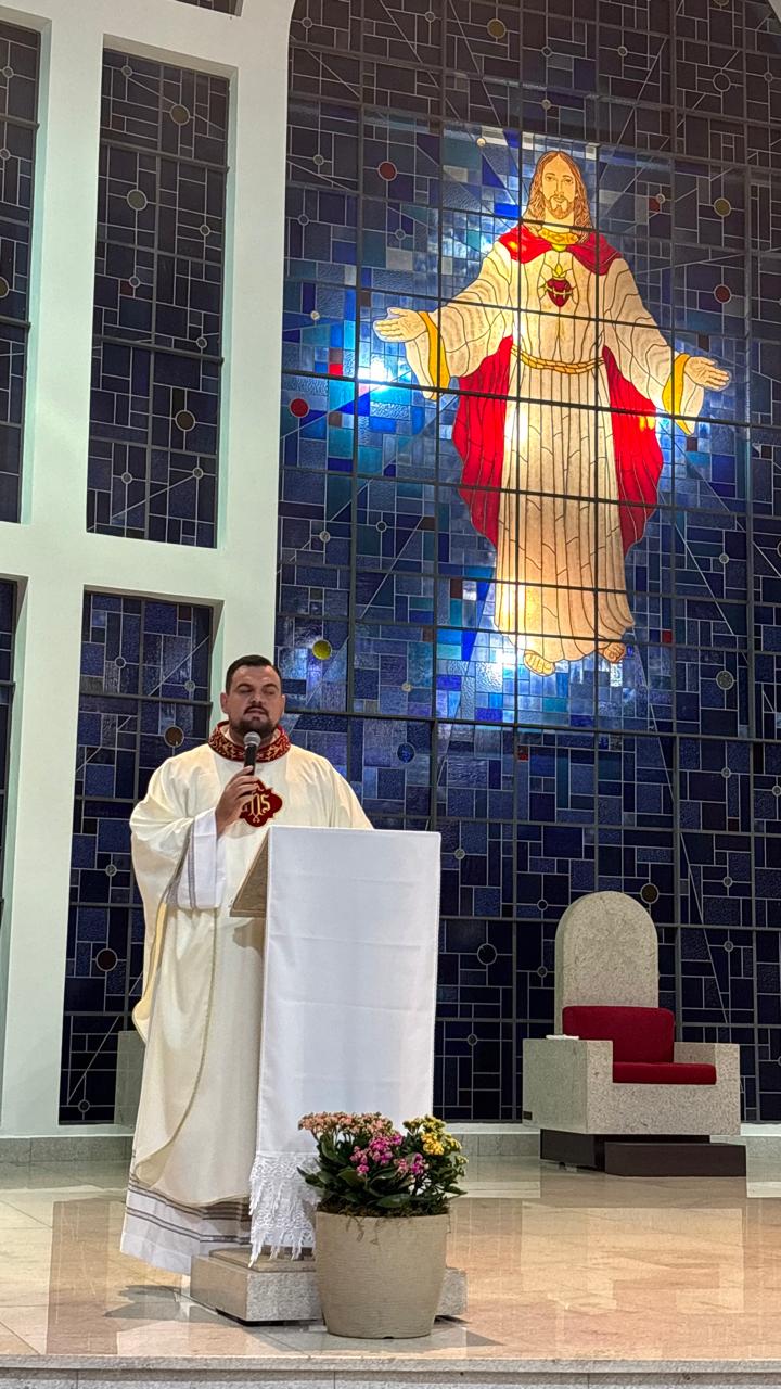 A Santa Missa foi presidida pelo Pe. Ricardo Boaro, que nos conduziu com palavras tocantes e nos convidou a mergulhar no mistério transformador do Coração amoroso de Cristo.