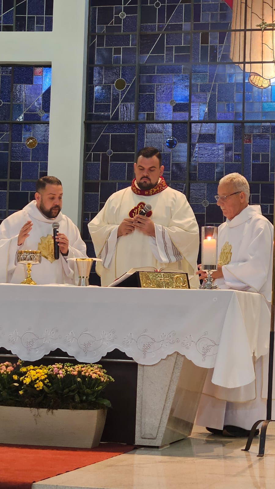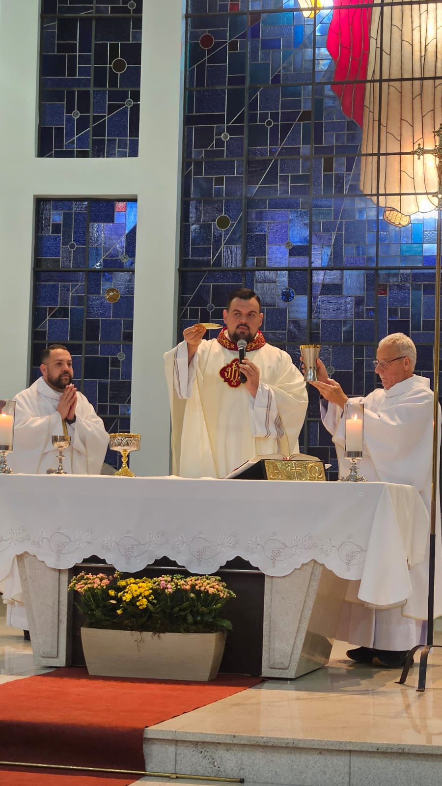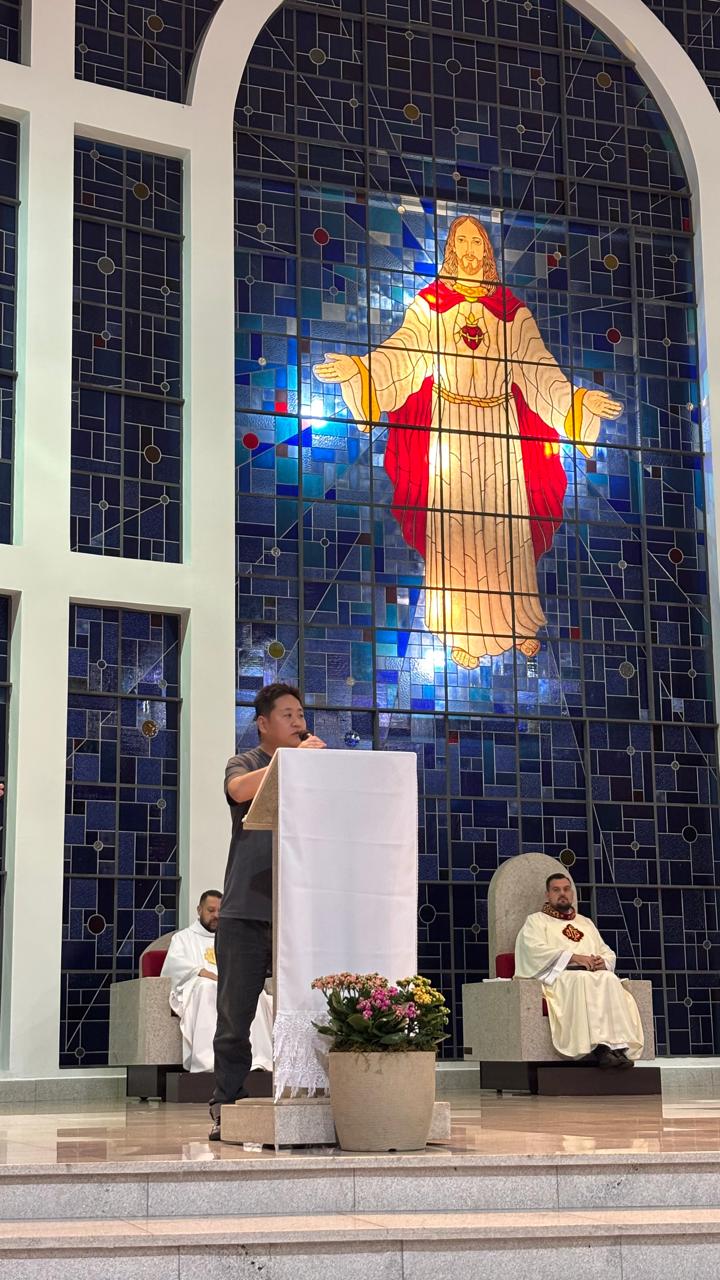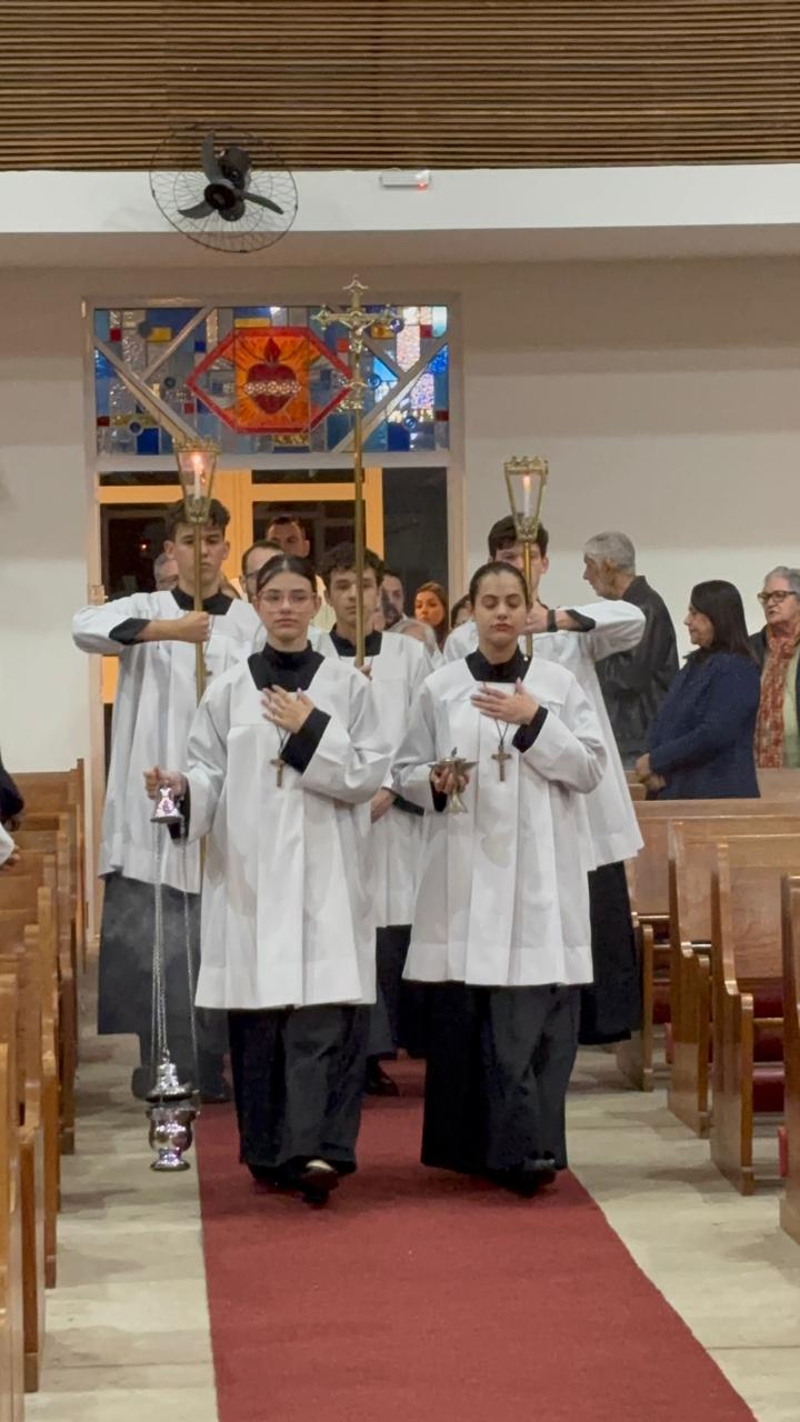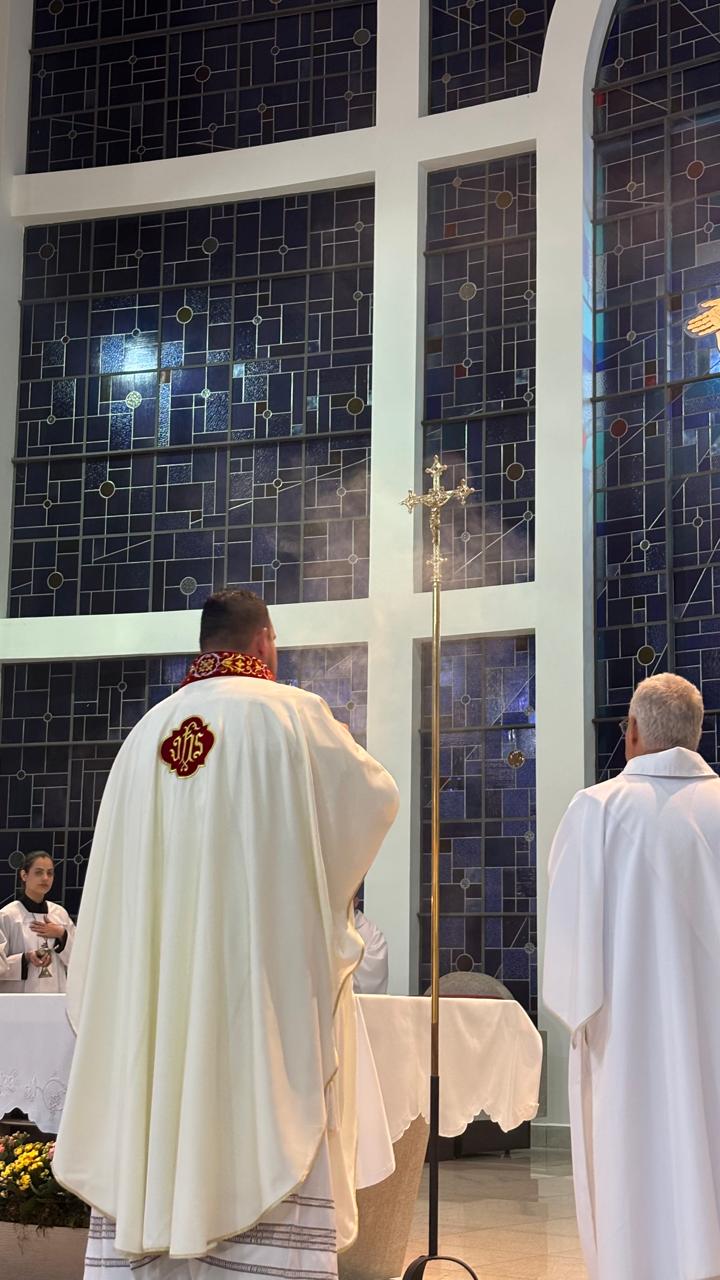 A Santa Missa foi presidida pelo Pe. Ricardo Boaro, que nos conduziu com palavras tocantes e nos convidou a mergulhar no mistério transformador do Coração amoroso de Cristo.