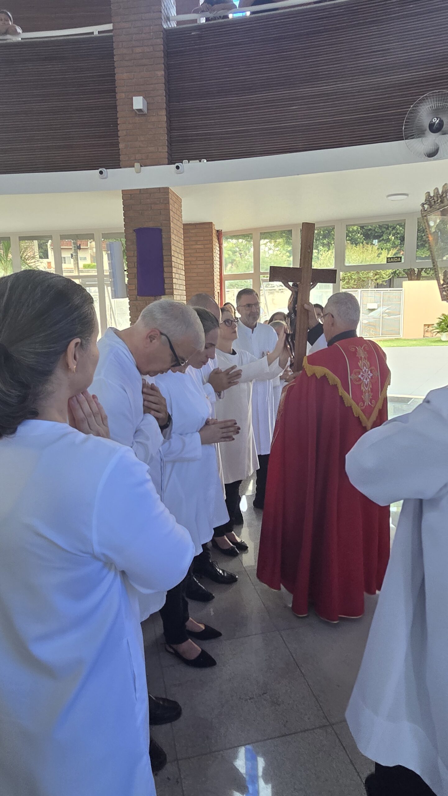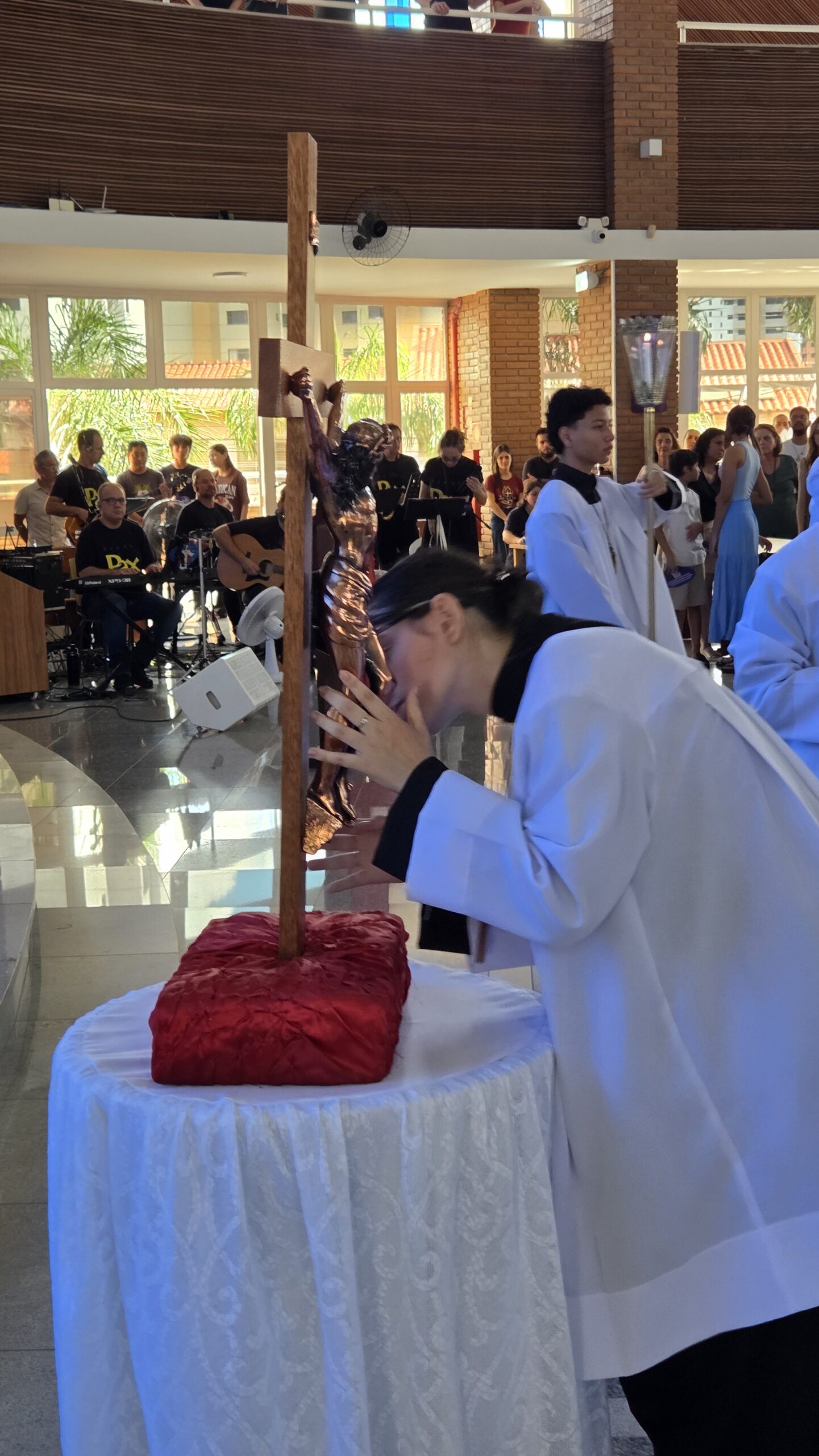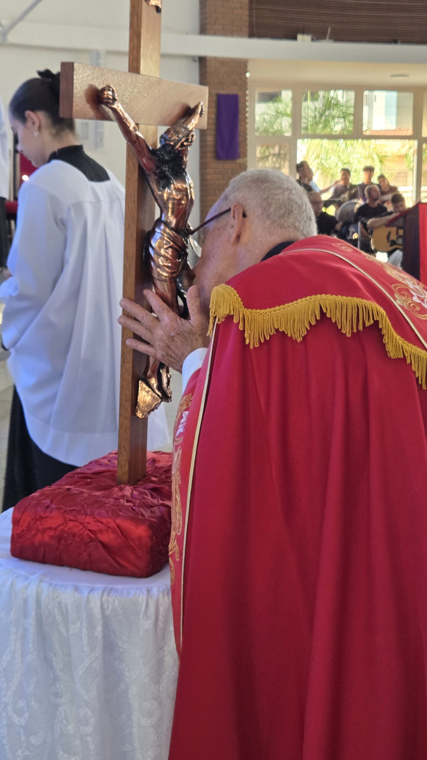Em profundo silêncio e oração, os fiéis participaram da Adoração da Cruz, recordando o sacrifício de Jesus que, por amor, entregou sua vida pela salvação da humanidade. Um momento de fé, recolhimento e contemplação do amor redentor de Cristo.