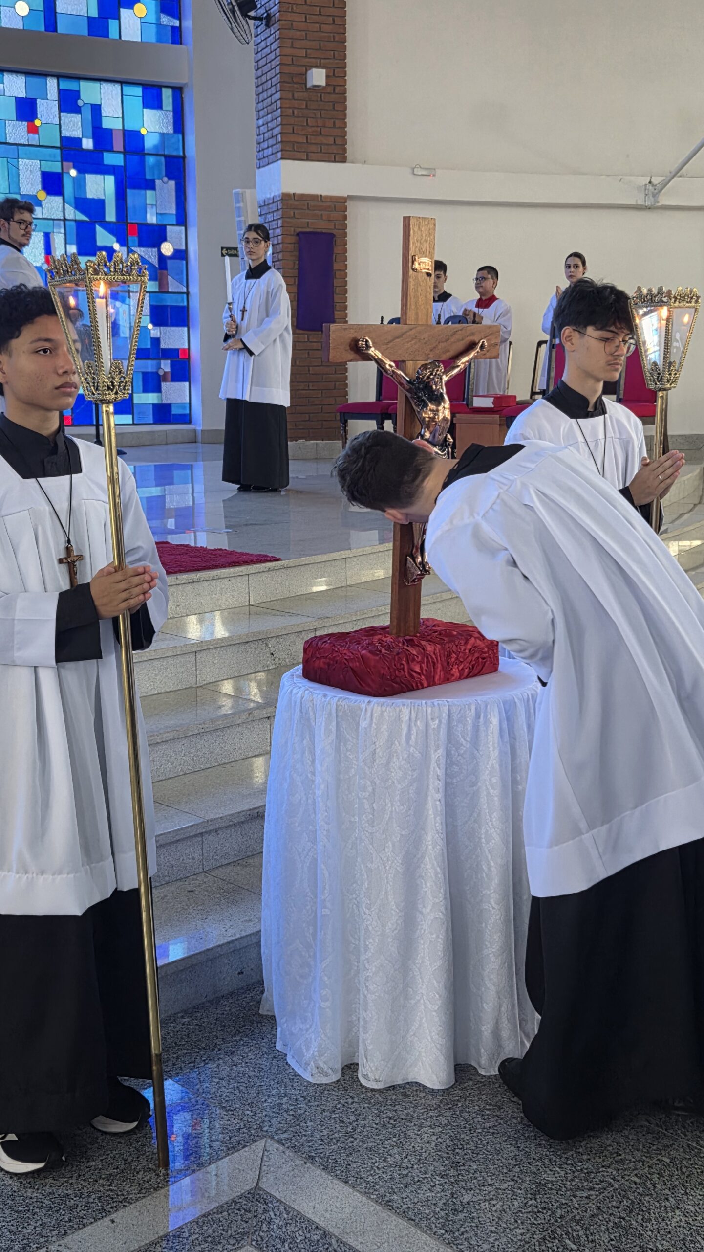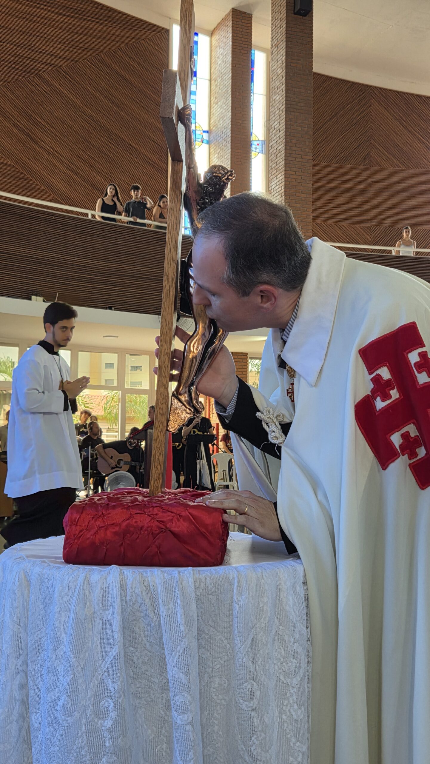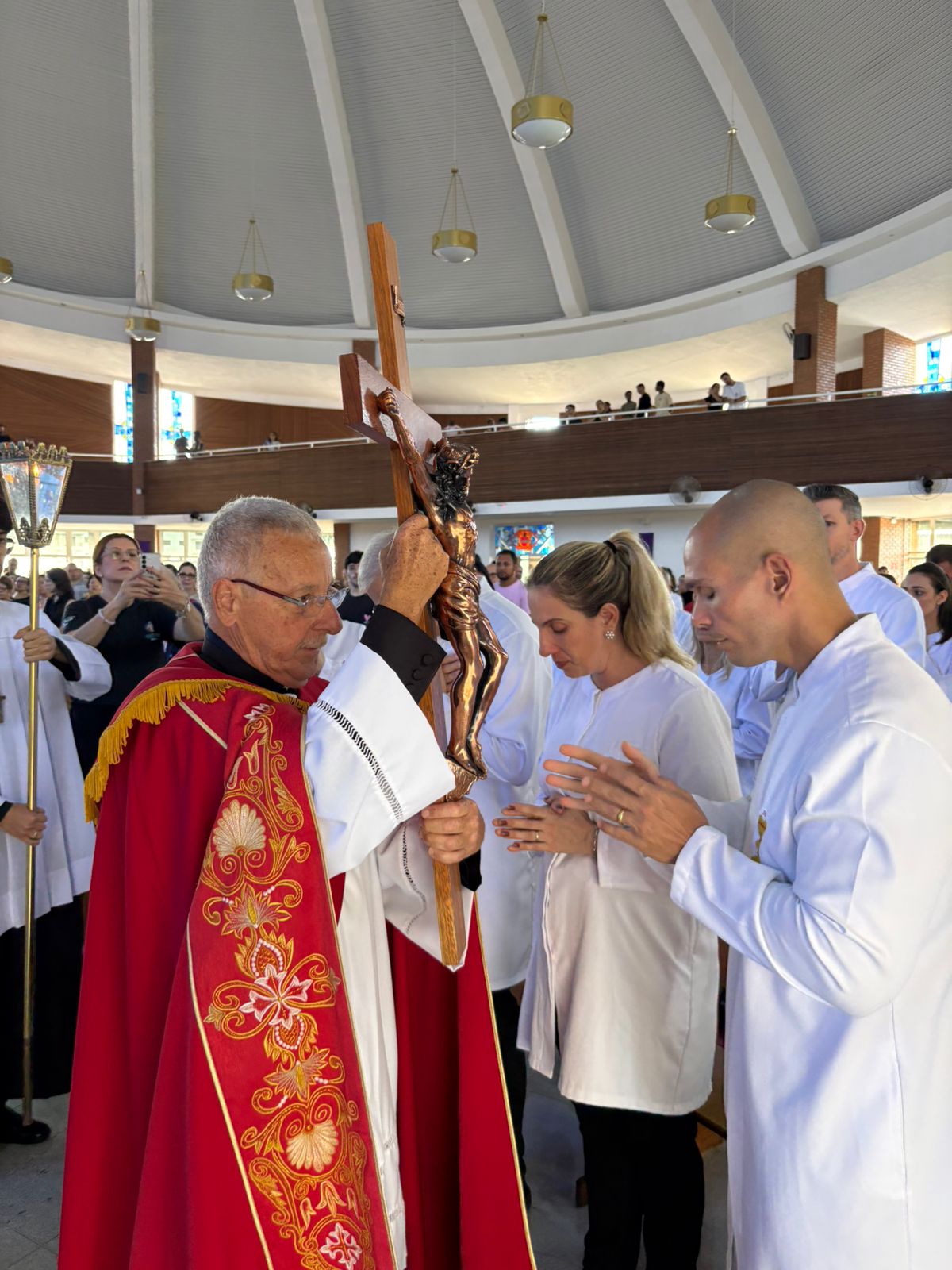 Em profundo silêncio e oração, os fiéis participaram da Adoração da Cruz, recordando o sacrifício de Jesus que, por amor, entregou sua vida pela salvação da humanidade. Um momento de fé, recolhimento e contemplação do amor redentor de Cristo.