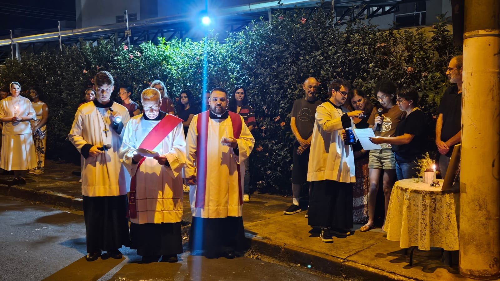 No dia 03 de abril de 2026, Sexta-feira Santa, os fiéis do Santuário do Sagrado Coração de Jesus, juntamente com o Padre Rodrigo Sena, Diácono Rafael e as Irmãos Apóstolas do Sagrado Coração de Jesus percorreram as ruas do bairro em procissão rezando a Via-Sacra, recordando os passos de Jesus em sua Paixão.