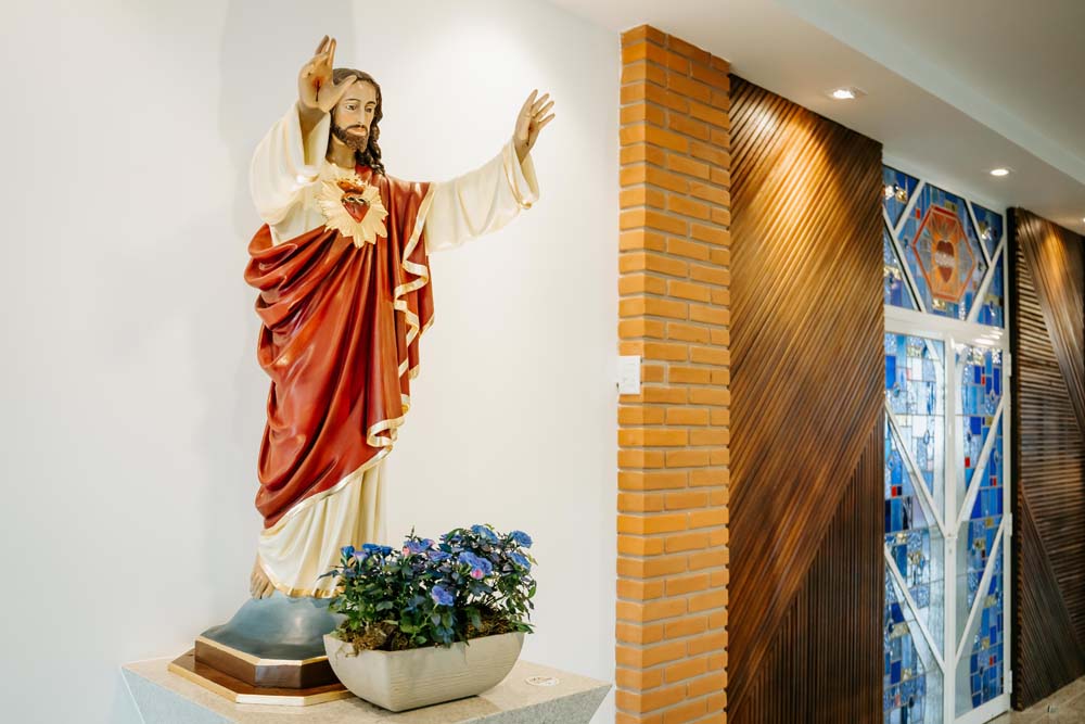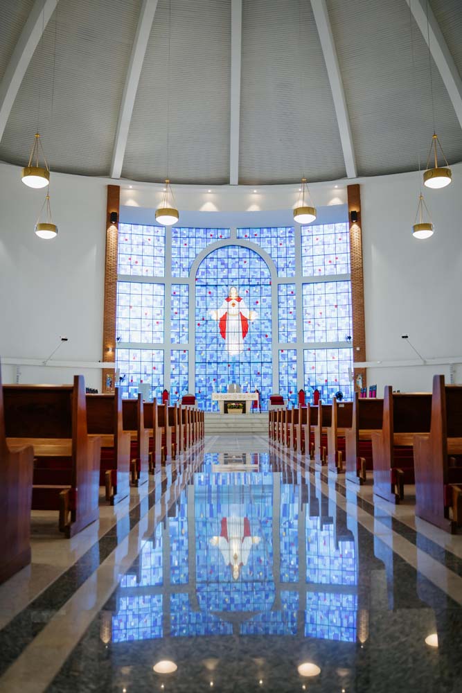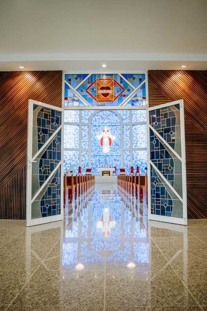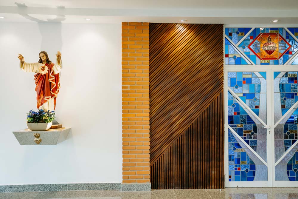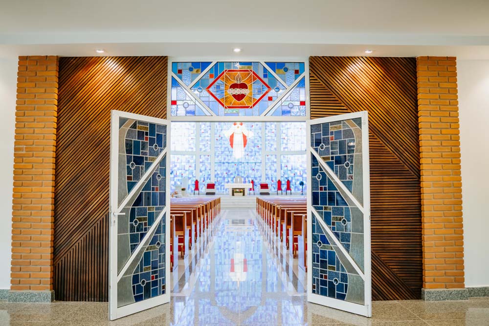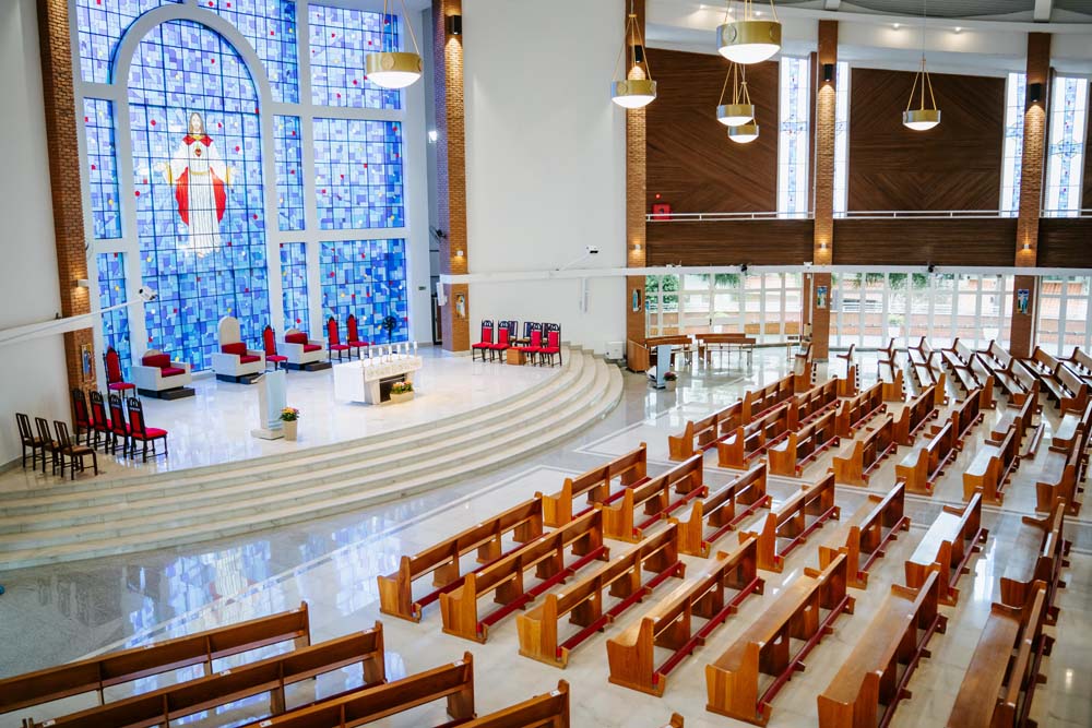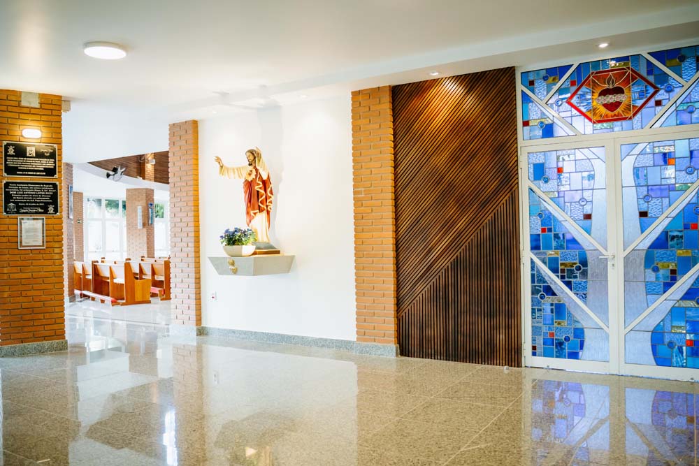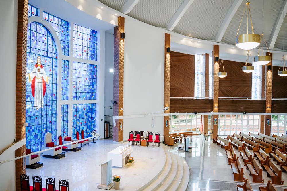 Inicialmente, as missas ocorriam no campus da antiga Universidade do Sagrado Coração (USC), hoje UNISAGRADO. Em 2001, a paróquia conquistou sua sede própria no Jardim Panorama, com um projeto arquitetônico futurista desenvolvido pelo arquiteto bauruense Jurandyr Bueno Filho, célebre pelos seus projetos como o Parque Vitória Regia e o campus do UNISAGRADO. O edifício de mais de 3 mil metros quadrados se destaca pelo seu formato e pelo grande painel do Sagrado Coração de Jesus no altar, representando um símbolo de fé e acolhimento para a comunidade acadêmica. Embora ainda esteja em fase de finalização, o templo já é considerado um dos maiores em área construída na cidade, oferecendo um ambiente inspirador e espiritual para todos.