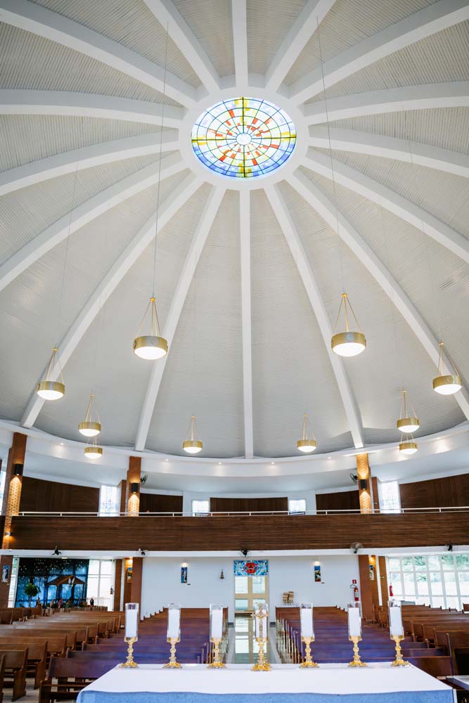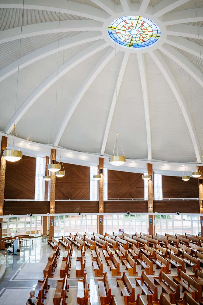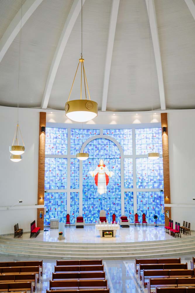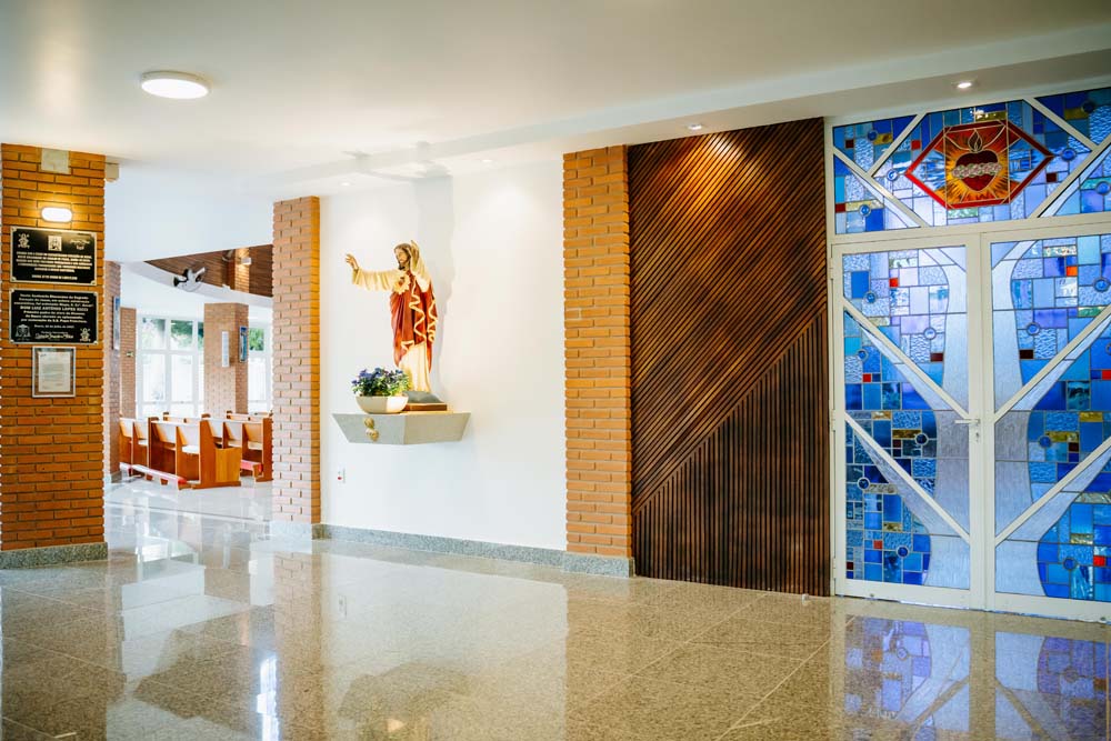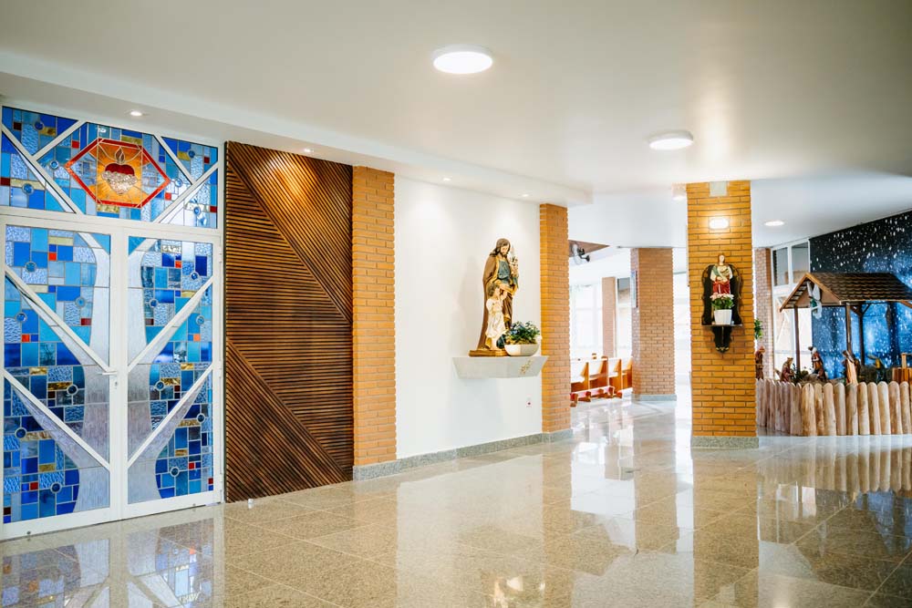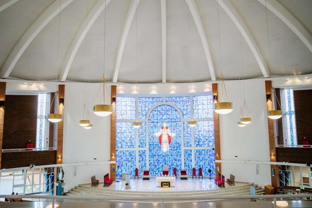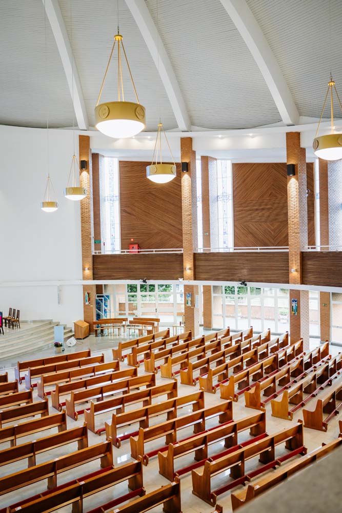 Inicialmente, as missas ocorriam no campus da antiga Universidade do Sagrado Coração (USC), hoje UNISAGRADO. Em 2001, a paróquia conquistou sua sede própria no Jardim Panorama, com um projeto arquitetônico futurista desenvolvido pelo arquiteto bauruense Jurandyr Bueno Filho, célebre pelos seus projetos como o Parque Vitória Regia e o campus do UNISAGRADO. O edifício de mais de 3 mil metros quadrados se destaca pelo seu formato e pelo grande painel do Sagrado Coração de Jesus no altar, representando um símbolo de fé e acolhimento para a comunidade acadêmica. Embora ainda esteja em fase de finalização, o templo já é considerado um dos maiores em área construída na cidade, oferecendo um ambiente inspirador e espiritual para todos.