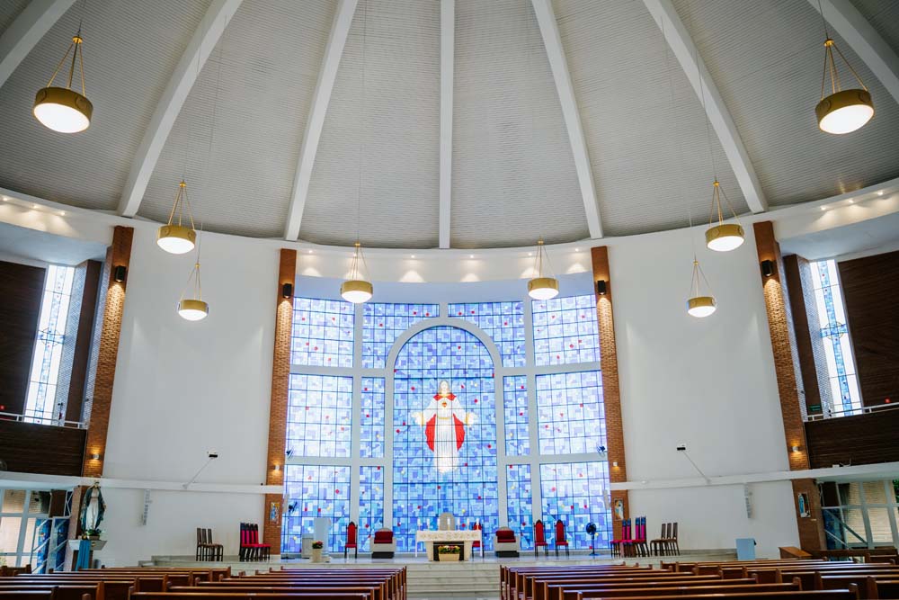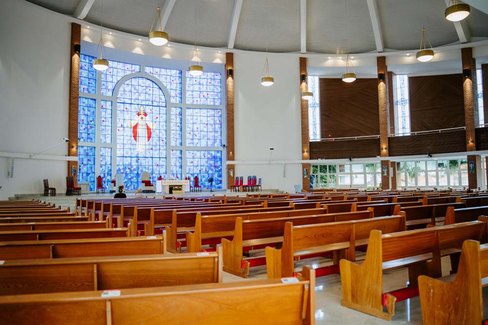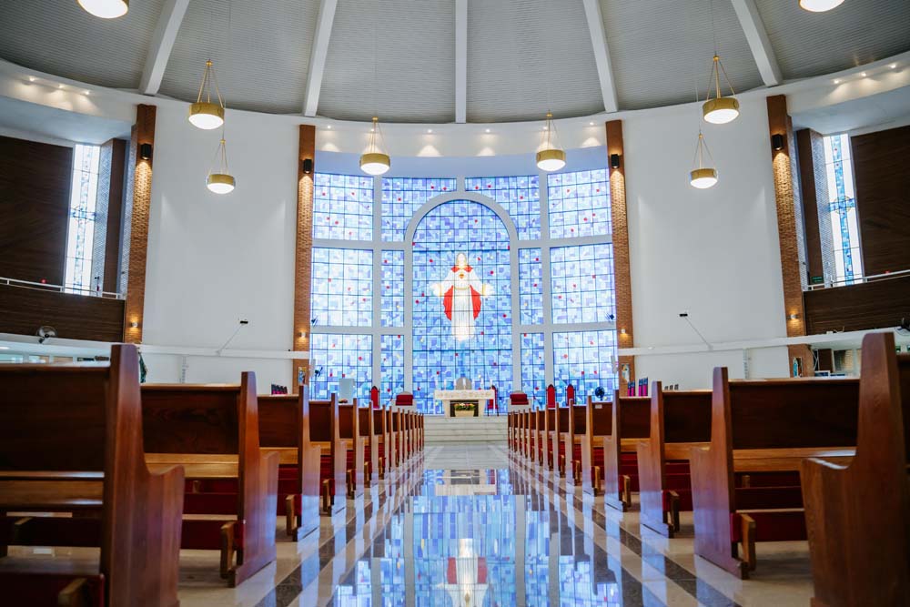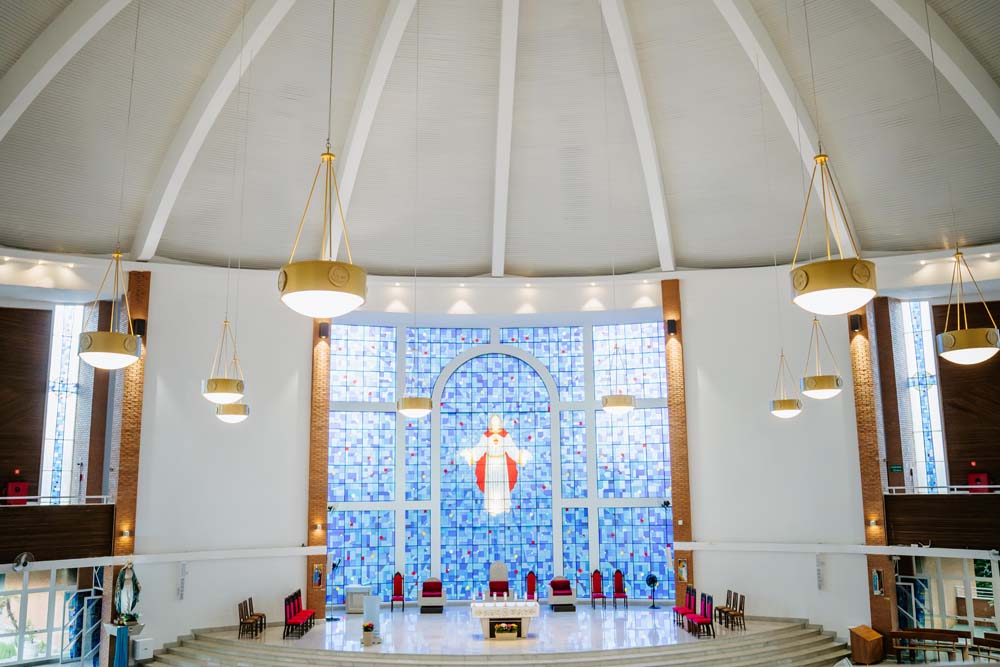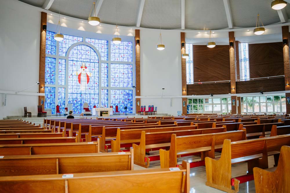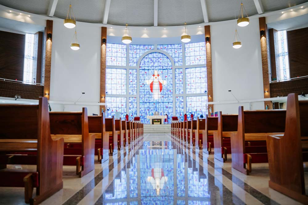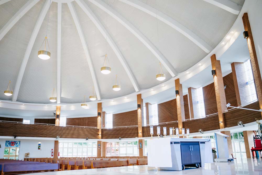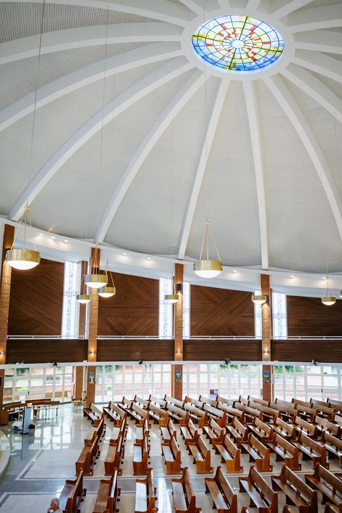 Inicialmente, as missas ocorriam no campus da antiga Universidade do Sagrado Coração (USC), hoje UNISAGRADO. Em 2001, a paróquia conquistou sua sede própria no Jardim Panorama, com um projeto arquitetônico futurista desenvolvido pelo arquiteto bauruense Jurandyr Bueno Filho, célebre pelos seus projetos como o Parque Vitória Regia e o campus do UNISAGRADO. O edifício de mais de 3 mil metros quadrados se destaca pelo seu formato e pelo grande painel do Sagrado Coração de Jesus no altar, representando um símbolo de fé e acolhimento para a comunidade acadêmica. Embora ainda esteja em fase de finalização, o templo já é considerado um dos maiores em área construída na cidade, oferecendo um ambiente inspirador e espiritual para todos.
