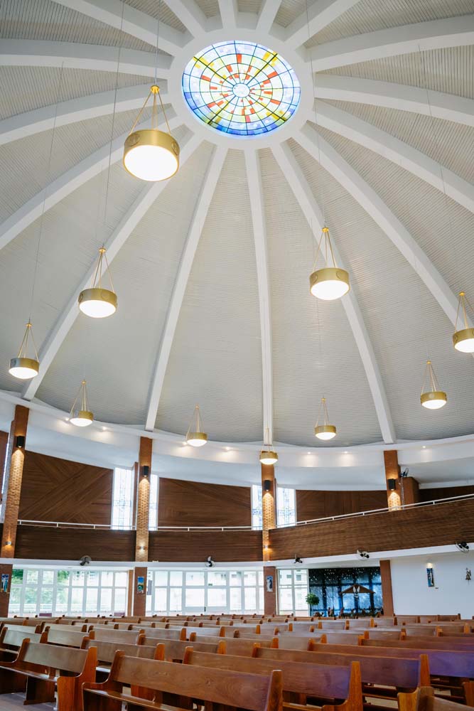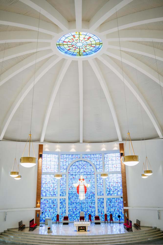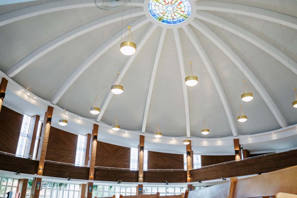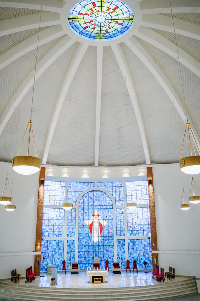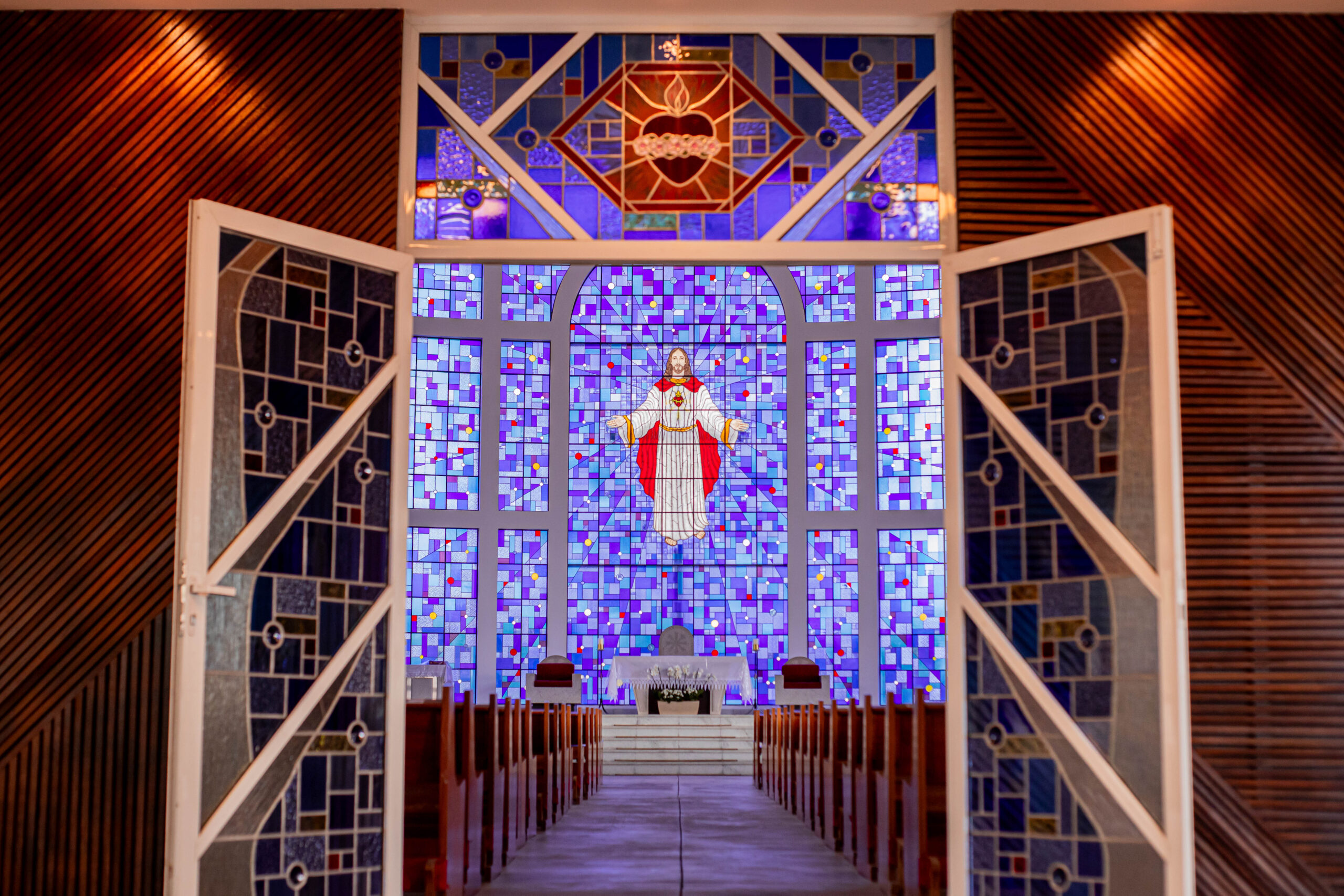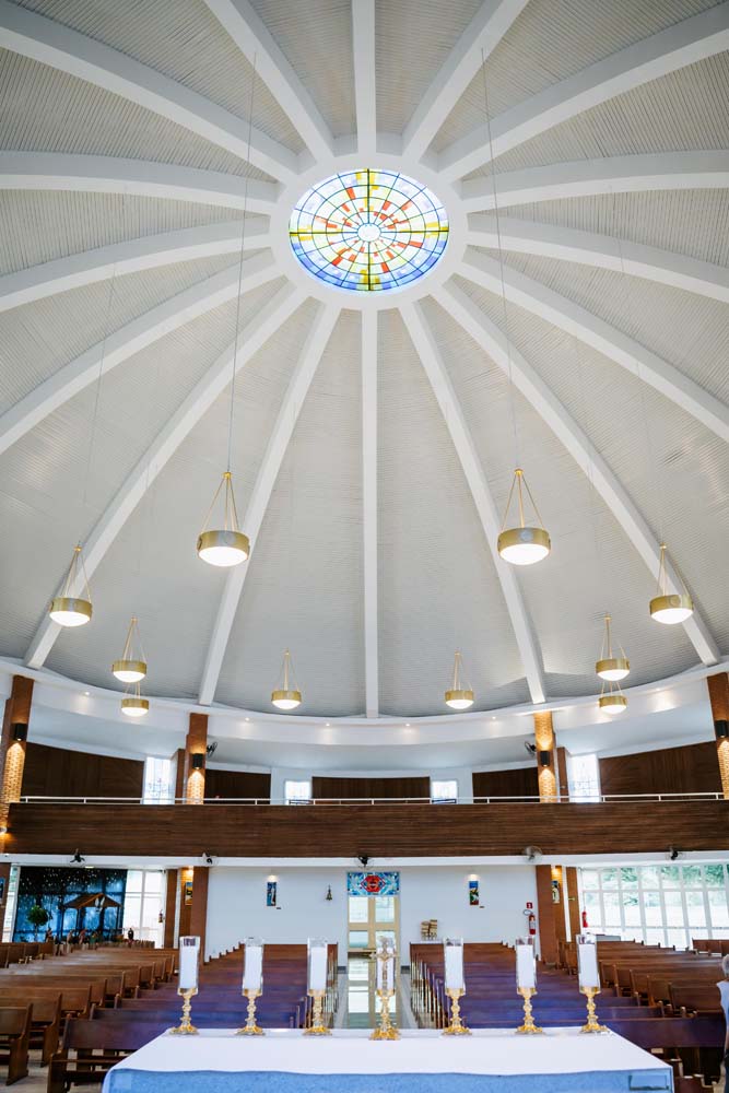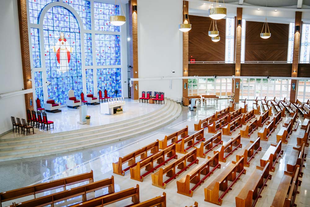 Inicialmente, as missas ocorriam no campus da antiga Universidade do Sagrado Coração (USC), hoje UNISAGRADO. Em 2001, a paróquia conquistou sua sede própria no Jardim Panorama, com um projeto arquitetônico futurista desenvolvido pelo arquiteto bauruense Jurandyr Bueno Filho, célebre pelos seus projetos como o Parque Vitória Regia e o campus do UNISAGRADO. O edifício de mais de 3 mil metros quadrados se destaca pelo seu formato e pelo grande painel do Sagrado Coração de Jesus no altar, representando um símbolo de fé e acolhimento para a comunidade acadêmica. Embora ainda esteja em fase de finalização, o templo já é considerado um dos maiores em área construída na cidade, oferecendo um ambiente inspirador e espiritual para todos.